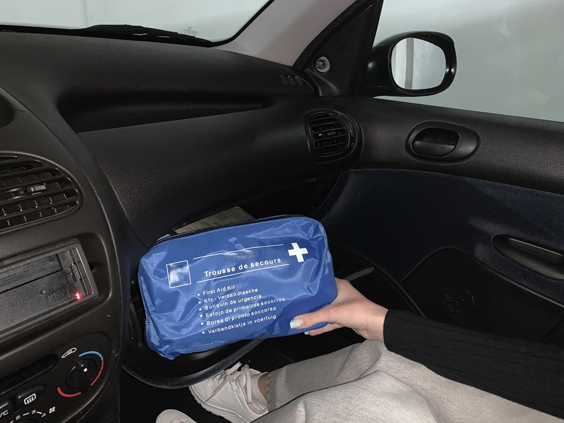 Το κιβώτιο πρώτων βοηθειών τοποθετείται εντός του οχήματος σε θέση εύκολα και άμεσα προσβάσιμη, ώστε να διασφαλίζεται η χρήση του χωρίς καθυστέρηση σε περίπτωση ανάγκης. Δεν πρέπει να κλειδώνεται ή να τοποθετείται μέσα σ’ αυτό οποιοδήποτε άλλο αντικείμενο, εκτός από το επιδεσμικό και φαρμακευτικό υλικό.