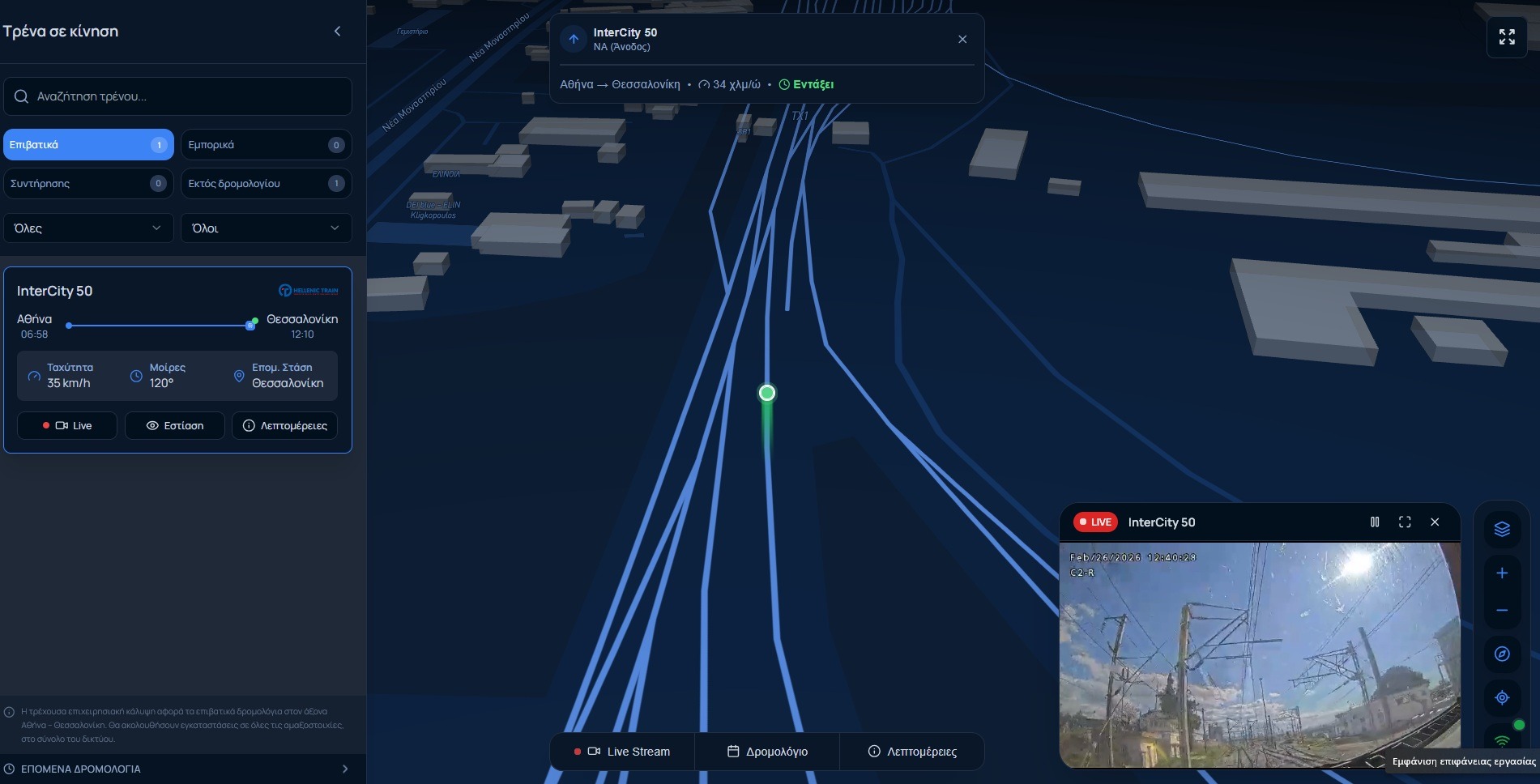 Για πρώτη φορά, υπάρχει ζωντανή, δημόσια και διαρκής εικόνα της κυκλοφορίας των τρένων σε πραγματικό χρόνο, με έναρξη εφαρμογής στον κεντρικό άξονα Αθήνα – Θεσσαλονίκη, με σταδιακή επέκταση το επόμενο διάστημα.