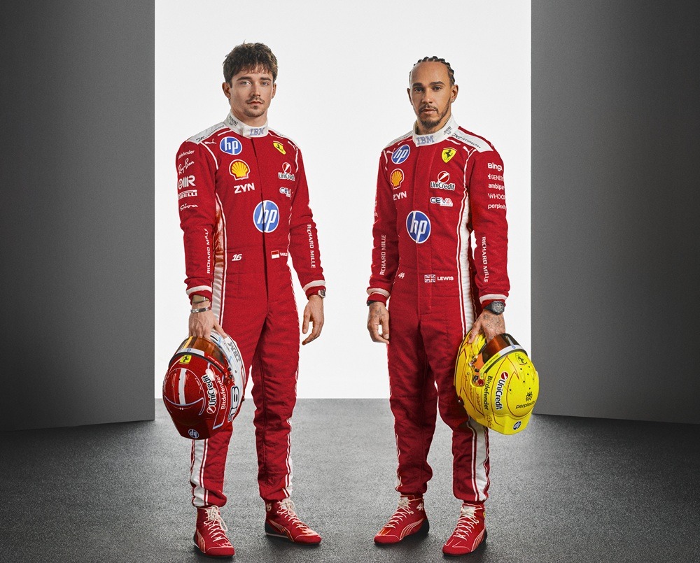 Αντίστοιχη φιλοσοφία ακολουθούν και οι αγωνιστικές φόρμες των οδηγών, με το κόκκινο να κυριαρχεί και το λευκό να τονίζει ώμους και γιακά, παραπέμποντας στην ιστορία της Scuderia.