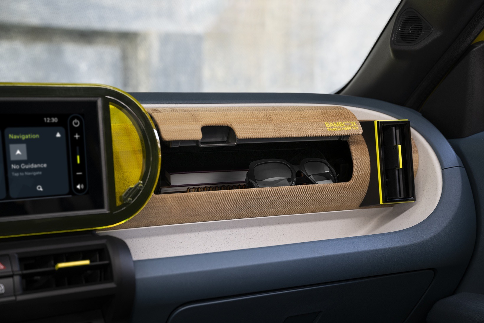 Επιπλέον, μια ειδική επένδυση στο ταμπλό, αποδεικνύει ότι ο σύγχρονος σχεδιασμός και η οικολογία μπορούν να συνυπάρχουν. Ονομάζεται “BAMBOX Bamboo Fiber Tex®” και περιέχει κατά 33% πραγματικές ίνες μπαμπού.