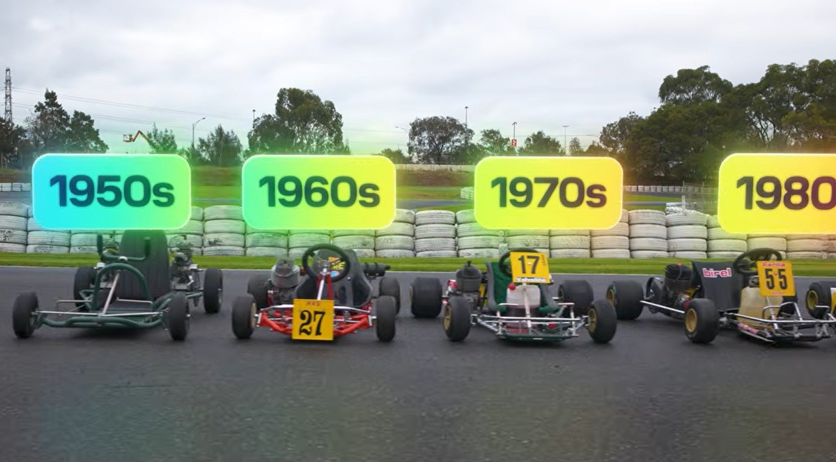 Δείτε τον Lando Norris και τον Carlos Sainz να συναγωνίζονται με διάφορα καρτ από τη δεκαετία του 1950 μέχρι σήμερα.