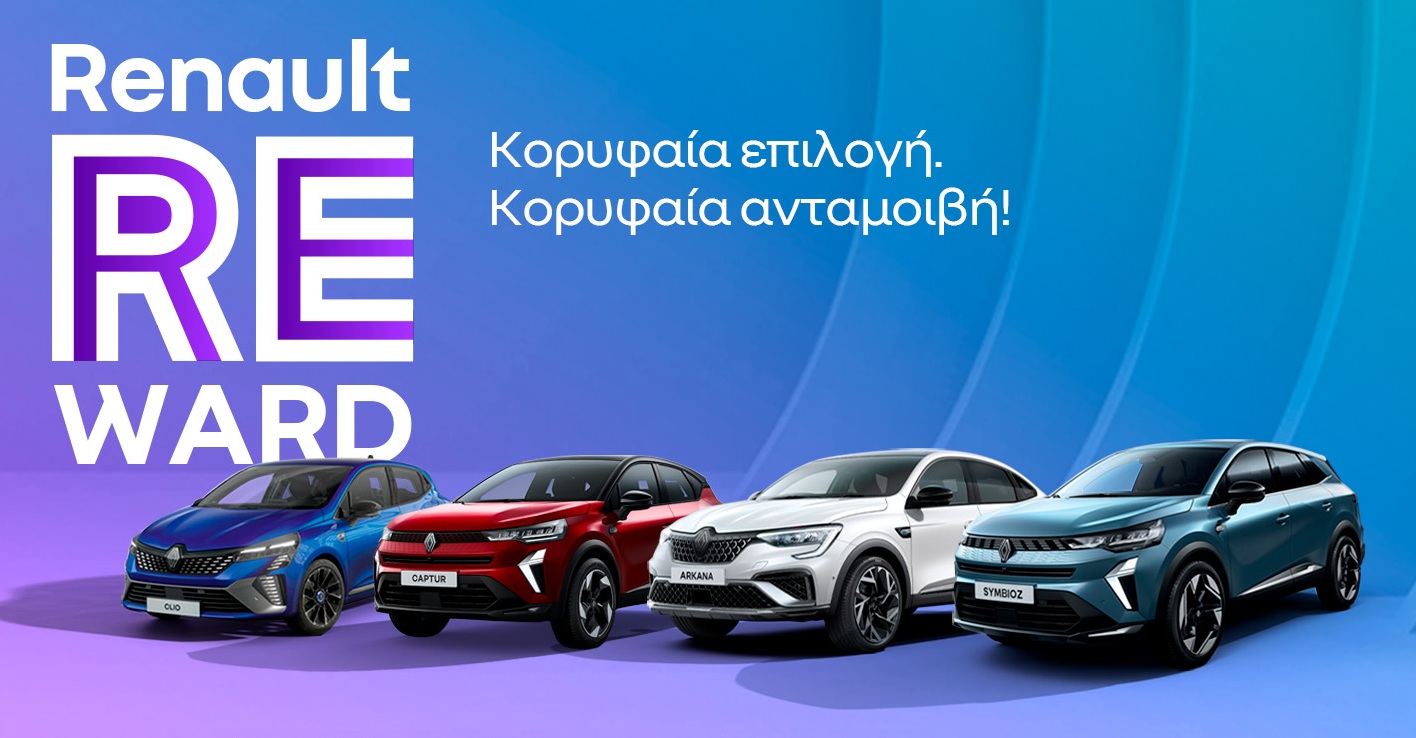 Με κεντρικό μήνυμα «Κορυφαία επιλογή, Κορυφαία ανταμοιβή», η RENAULT αυτές τις γιορτές προσφέρει, περιορισμένο αριθμό αυτοκινήτων, σε δελεαστικές τιμές. Πιο συγκεκριμένα, το best seller Clio, το δημοφιλές B-SUV Captur, το σπορτίφ κουπέ-SUV Arkana και το hi-tech C-SUV νέο RENAULT Symbioz, προσφέρονται με όφελος που φτάνει τα 2.500 ευρώ. Οι προσφορές αυτές ισχύουν για αγορές μέχρι το τέλος του 2025.